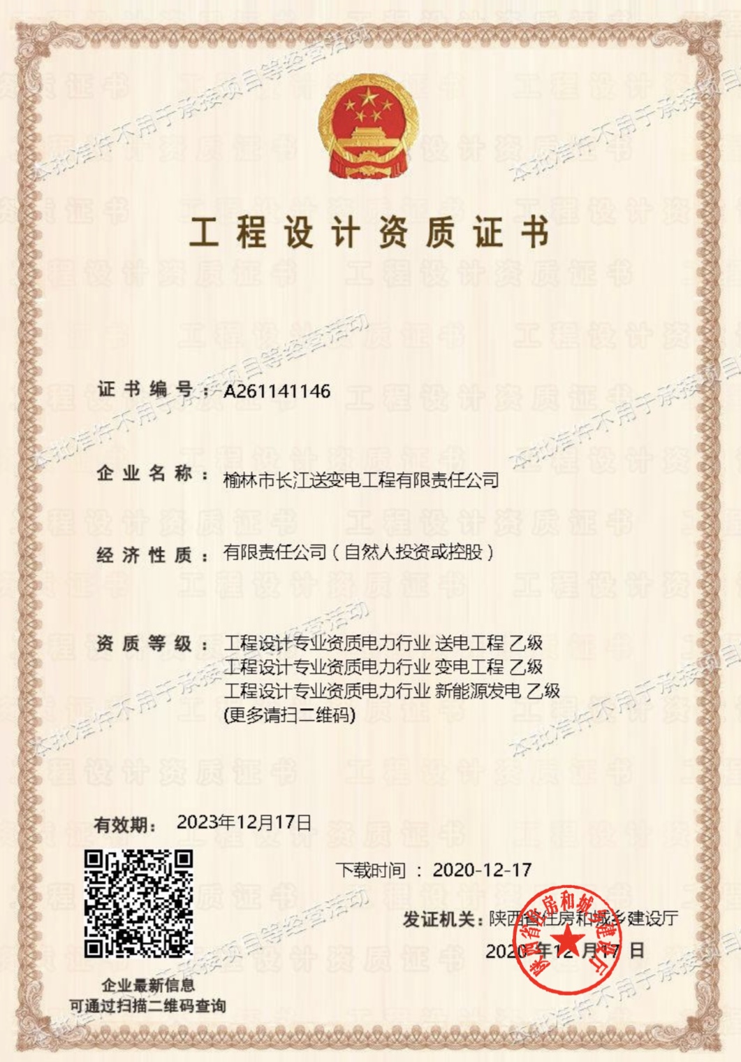 榆林市長(zhǎng)江送變電站有限公司資質(zhì)證書