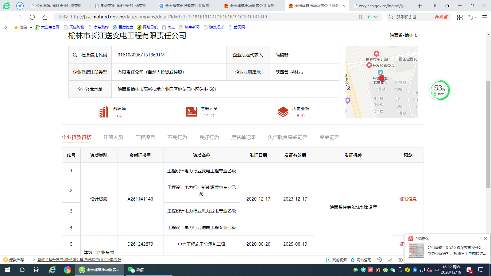 榆林市長(zhǎng)江送變電站有限公司資質(zhì)證書