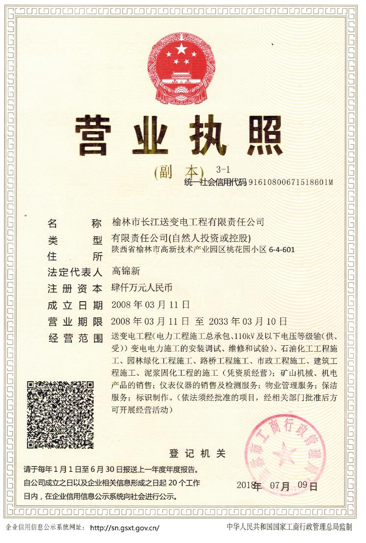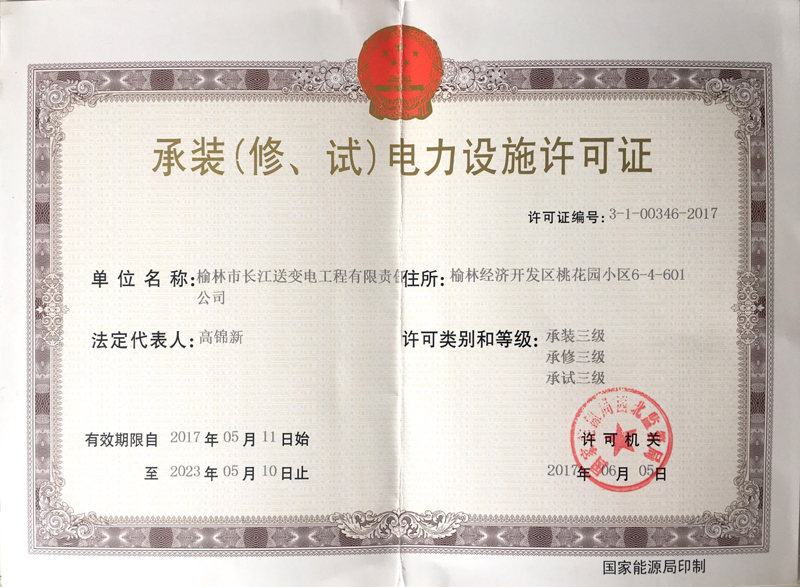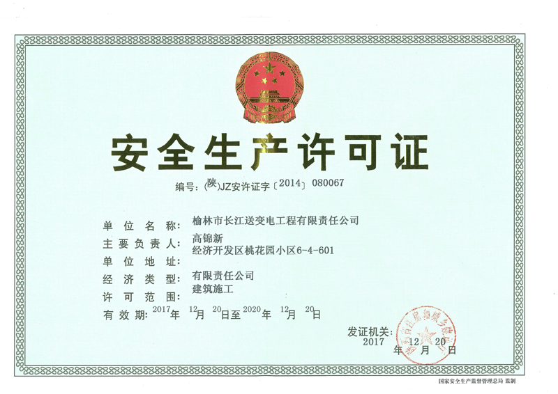 end-->安全生產(chǎn)許可證 -榆林市長江送變電工程有限責任公司">