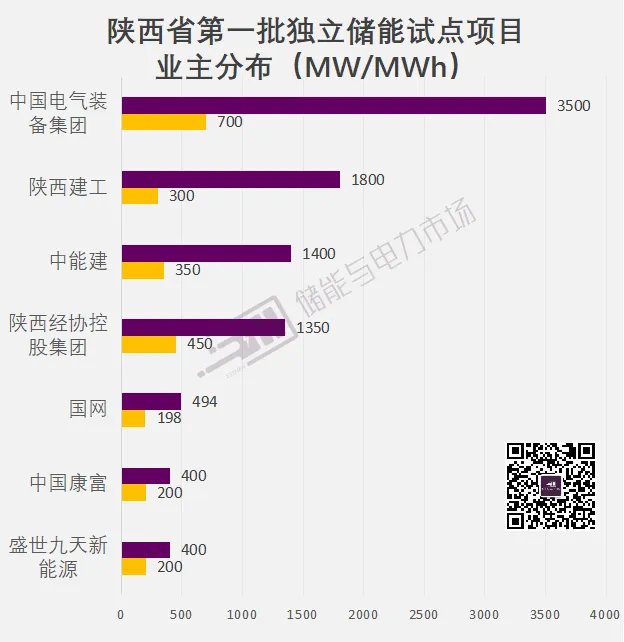 業(yè)主分布上看,9個(gè)項(xiàng)目共被7個(gè)業(yè)主分獲,中國(guó)電氣裝備規(guī)模最大,達(dá)到0.7GW/3.5GWh,陜西建工、中能建緊隨其后,獲得儲(chǔ)能項(xiàng)目規(guī)模分別為0.3GW/1.8GWh、0.35GW/1.4GWh。